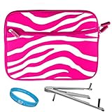 Magenta Zebra Design Neoprene Protective Sleeve Cover Carrying Case with Exterior Accessory Pocket for MOTOROLA XOOM Android Tablet (Wi-Fi) + Uniiversal Silver Butterfly Tablet Stand + SumacLife TM Wisdom Courage Wristband for Sale - Review & Buy at Cheap Price